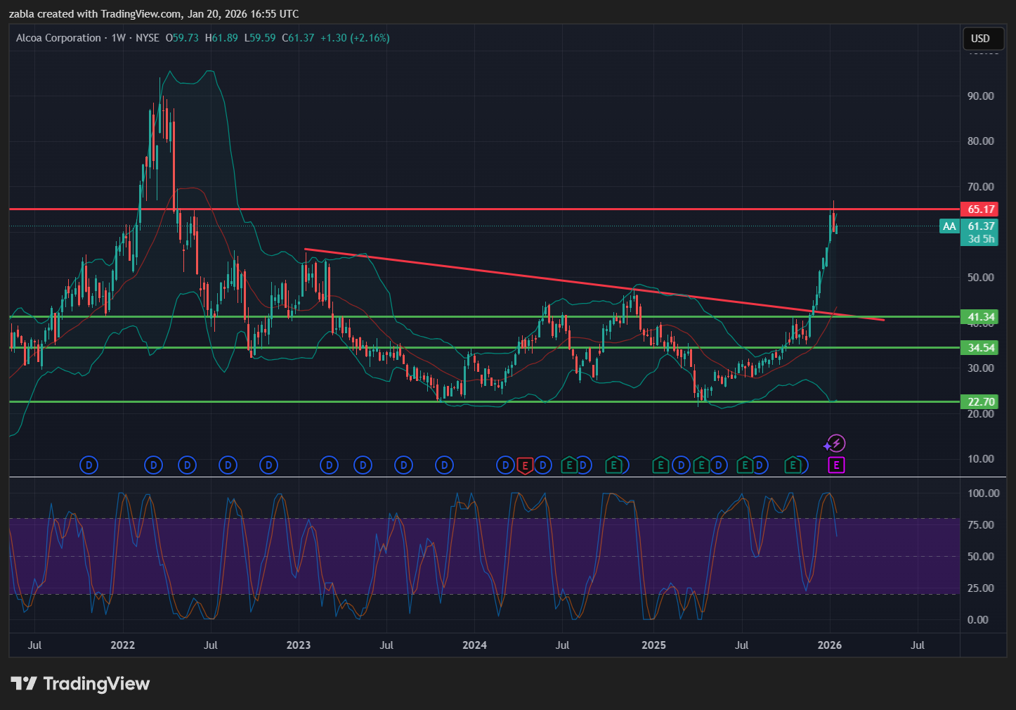 Alapanyagos Alcoa igen meredeken emelkedett. Az Alcoa (AA), az amerikai alapanyagipari vállalat, a tervek szerint 2026. január 22-én, csütörtökön teszi közzé a 2025-ös negyedik negyedévi és teljes éves pénzügyi eredményeit, a piaci zárás után. Az elemzői konszenzus szerint a Q4 2025-ös bevétel várhatóan 3,28 milliárd dollár körül alakul, ami éves szinten 5,79%-os csökkenést jelenthet. Az egy részvényre jutó eredmény (EPS) tekintetében az előrejelzések 0,929 dollárt prognosztizálnak, bár más elemzői becslések 0,88 és 0,99 dollár között szóródnak. Az előző év azonos negyedévében az EPS 0,57 dollár volt, tehát jelentős növekedés várható. A korábbi negyedévekben az Alcoa teljesítménye vegyes volt az elemzői várakozásokhoz képest, gyakran megfelelt vagy felülmúlta azokat, de voltak elmaradások is, például a 2025-ös második negyedévben.