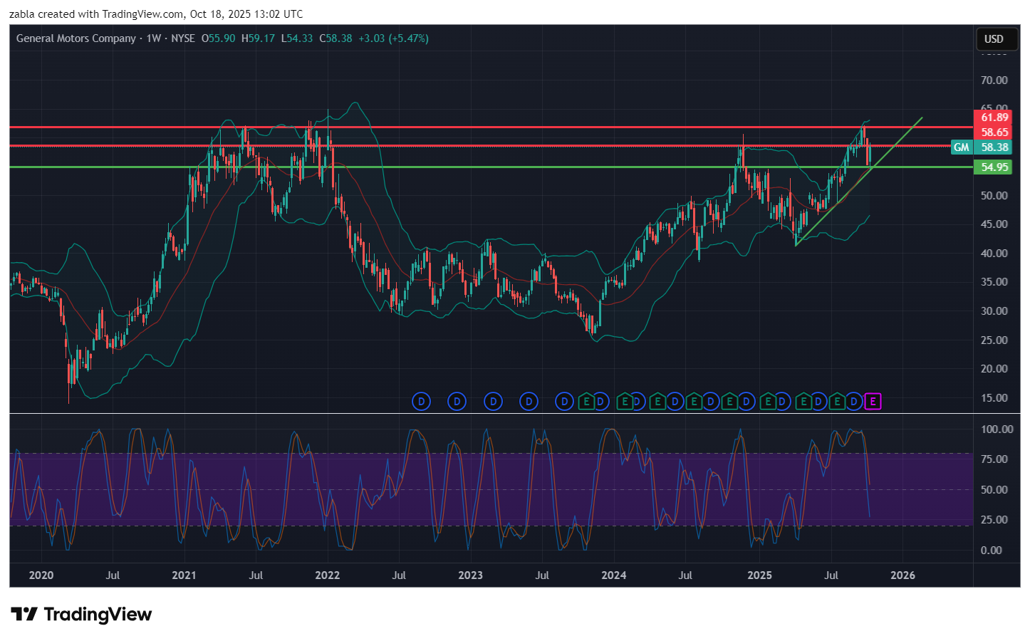 General Motors piaci nyomás alatt emelkedik. A General Motors október 21-én teszi közzé 2025-ös harmadik negyedévi eredményeit, és az elemzők vegyes eredményekre számítanak az amerikai autógyártó számára, mivel a makrogazdasági és az elektromos járművekre jellemző nehézségekkel küzd. A konszenzusos előrejelzések szerint a bevétel 44-45 milliárd dollár körül alakul, ami 8-9%-os visszaesést jelent éves szinten, míg az egy részvényre jutó nyereség várhatóan nagyjából 23%-kal, 2,26-2,32 dollárra csökken. A GM amerikai járműeladásai azonban 8%-kal emelkedtek a harmadik negyedévben a teherautók, terepjárók és a GMC márka iránti erős keresletnek köszönhetően, aminek köszönhetően az összes kiszállítás meghaladta a 710 000 darabot. Az elektromos járművek eladásai 110%-kal, több mint 66 000 darabra emelkedtek, de a lendületet mérsékelte a 7500 dolláros szövetségi elektromos járművekre vonatkozó adójóváírás lejárta és az elektromos járművek iránti kereslet lassulása miatt kivetett 1,6 milliárd dolláros díj.